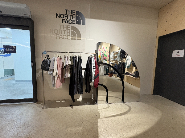 내부에는 노스페이스 의상이나 가방 킨디클라이밍 티셔츠도 판매하고 있었어요 초크나 테이핑 용품도 보이네요